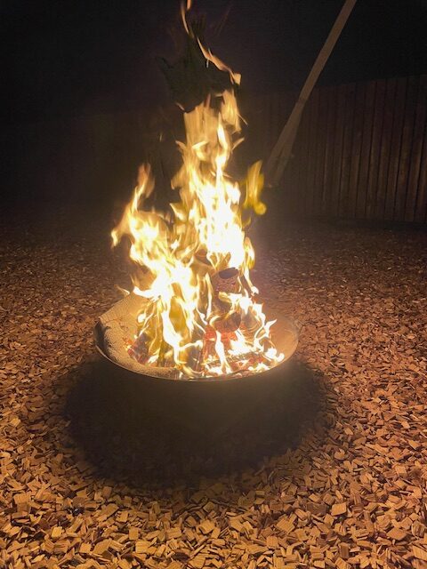 家に溜まっていた薪を全て持ってきて夜は豪快に焚火をやりました。全て燃やし尽くしましたよ。